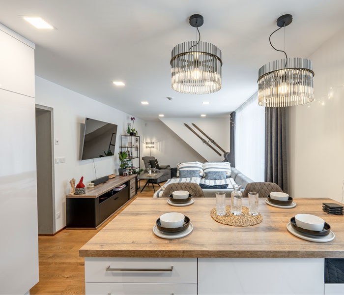 Obývací část, kuchyň i ložnice tvoří jeden harmonický celek — bez bariér, bez hluku, bez kompromisů. Místo, kde všechno působí přirozeně správně. A kde se cítíte jako doma, ještě než stihnete odložit kabát.